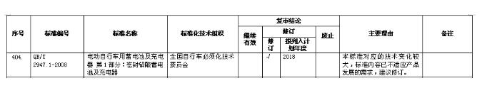 9月13日,國家工信部發(fā)布公示,公開征集對《水泥回轉(zhuǎn)窯用耐火材料使用規(guī)程》等740項推薦性行業(yè)標(biāo)準(zhǔn)集中復(fù)審結(jié)論的意見。其中,QB/T 2947.1-2008《電動自行車用蓄電池及充電器 第1部分:密封鉛酸蓄電池及充電池器》被列入修訂計劃。