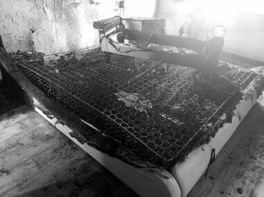 事發(fā)常青花園五小區(qū)14棟。昨天上午10點(diǎn)多,武漢晚報(bào)記者趕到現(xiàn)場看到,小區(qū)電工正在起火房屋內(nèi)檢查電路。整個(gè)房間都被熏得漆黑,起火點(diǎn)位于房屋主臥,一張雙人床燒得只剩床墊內(nèi)的彈簧支架。