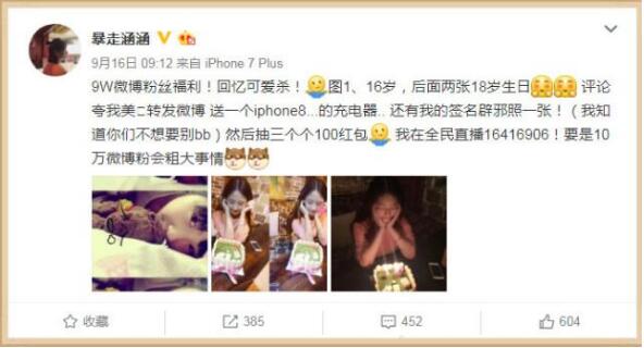 涵涵在自己的微博中的內(nèi)容,無(wú)數(shù)玩家們紛紛點(diǎn)評(píng),原來(lái)是涵涵的微博粉絲漲到了9萬(wàn),在微博中將自己以前的照片曬了出來(lái),并且告訴網(wǎng)友們,評(píng)論自己長(zhǎng)得漂亮,轉(zhuǎn)發(fā)之后,會(huì)抽取一名玩家送iphone8充電器,另外還有送300元紅包,堪稱(chēng)大手筆。