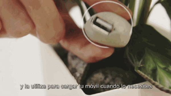 Bioo一天能充電兩到三次,電壓3.5V,電流0.5A。充電用的USB接口很巧妙地偽裝成了石頭的形狀。Bioo花盆利用有機(jī)材料與水和植物光合作用時(shí)產(chǎn)生的有機(jī)物反應(yīng),這一過程可以產(chǎn)生足夠的電量為設(shè)備充電。