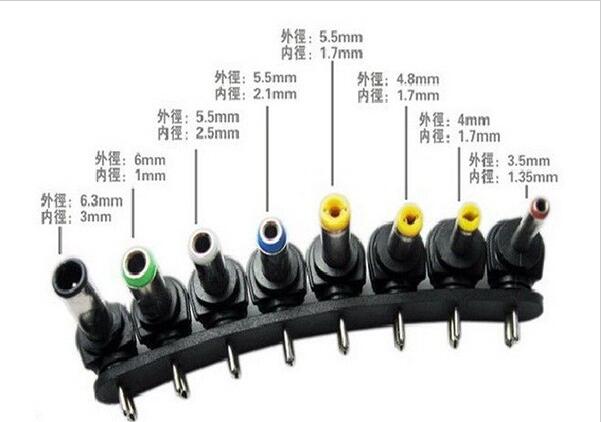 按輸出電壓電流分(充電器背后的標(biāo)簽上,一般寫在OUTPUT 后面,寫的是多少V,多少A),這其中有12V系列、15V系列、16V系列、18.5V系列、19V系列、19.5V系列、20V系列、24V系列等,這只是電壓,相同系列的電流還很能不同哦~另外,即便是電壓電流都相同,它們的接口大小相同的幾率也很小,單從接口的形狀來說,長的、扁的、方的、圓的,然而,就圓還分大圓和小圓...所以這真的很難搞有木有?