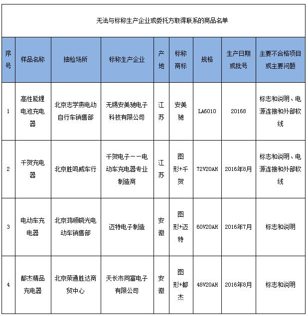 北京市工商行政管理局官網(wǎng)公布流通領(lǐng)域電動自行車用充電器質(zhì)量抽查檢驗結(jié)果,標稱“天長市鑫鵬電子”生產(chǎn)的“欣鵬”牌60V-12AH規(guī)格電動車充電器等40批次商品存在問題。