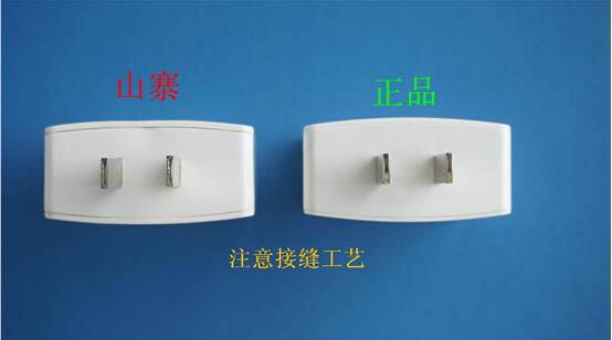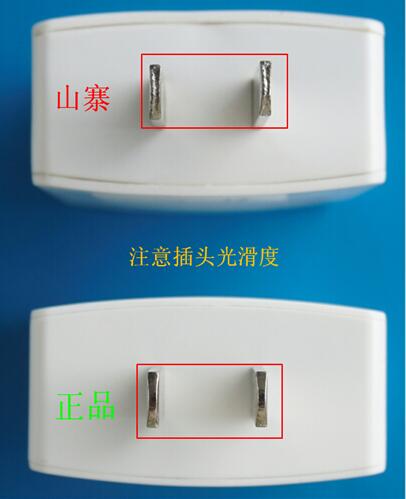 第五、看插頭表面工藝。正品工藝精益求精,插腳圓潤光滑;而山寨則坑坑洼洼,一眼就能看得出來。