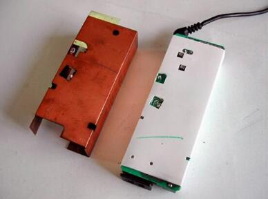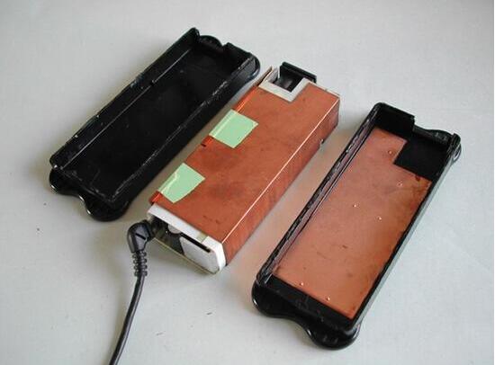 2、打開適配器的外殼,適配器外還包有銅質的屏蔽保護層,用美工刀隔開屏蔽層上的膠帶,再用電烙鐵焊開屏蔽層和電路板鏈接上的兩個焊點(圖3)就可以取下屏蔽保護層了。