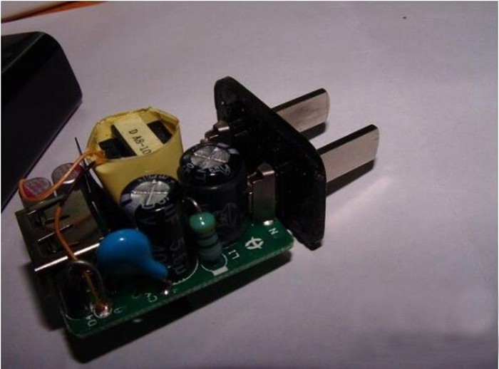 這個充電器做工是過關(guān)了,用料還行 但是設(shè)計上有缺陷,在某些地方市電不干凈的情況下,給手機(jī)充電會造成手機(jī)屏幕的漂移和失靈,所以我只拿它給移動電源充電。這款充電器的原件排的比較密集,這次拆它主要是為了加膠,針腳之間都挨得很近,加點703膠保險一些。