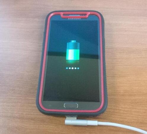 這位名為Carnivore的網(wǎng)友改造了一個備用的MagSafe電源接口,用3D打印機打印了Note2試用的保護殼,隨后將手機的充電接口部分與MagSafe接口連接進行了匹配,這些都搞定后,你可以看到用Macbook Air的充電器為Note2充電的景象了。